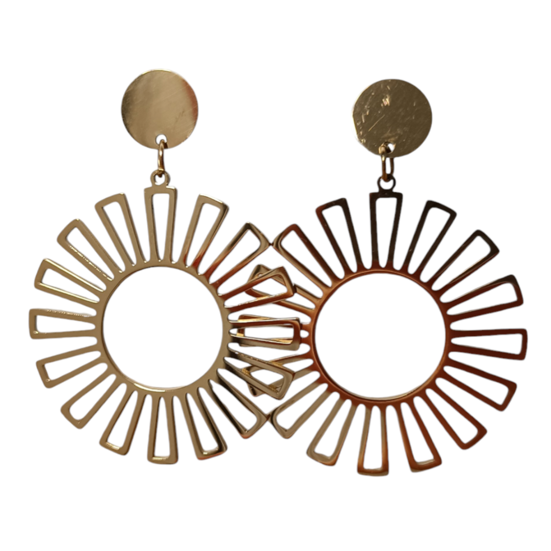 Pendiente en acero dorado, sol,