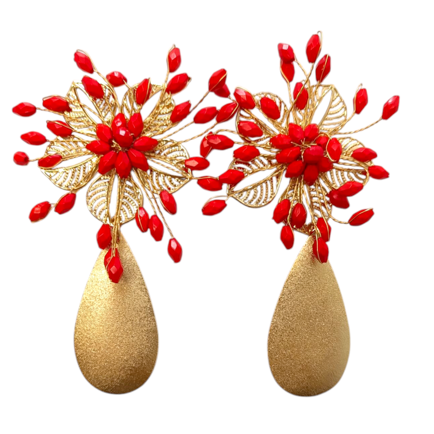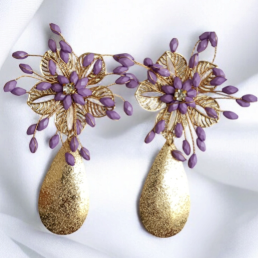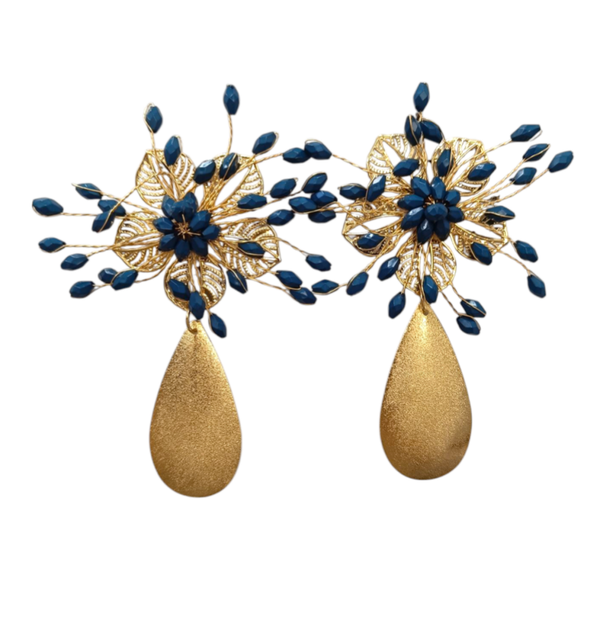 MATERIAL: Acero dorado adorno en flor de varios colores y lagrima en textura.