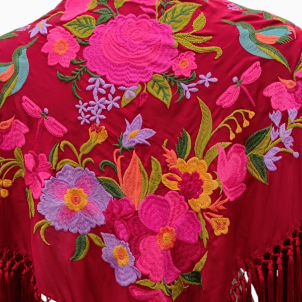 MANTON DE SEDA BURDEOS CON MUCHA CAIDA BORDADO EN SEDA.