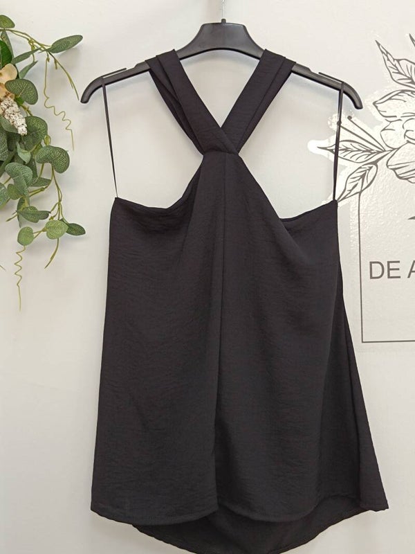Top en tela fluida, escote anudado en X