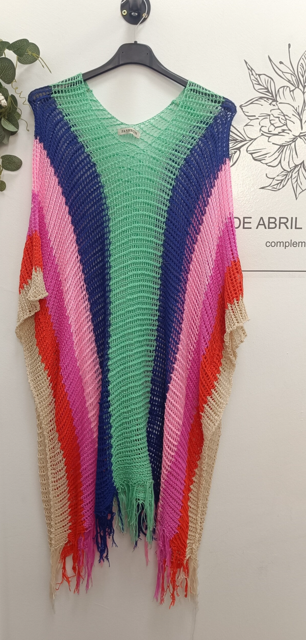 PONCHO EN CROCHET DE VARIOS COLORES.