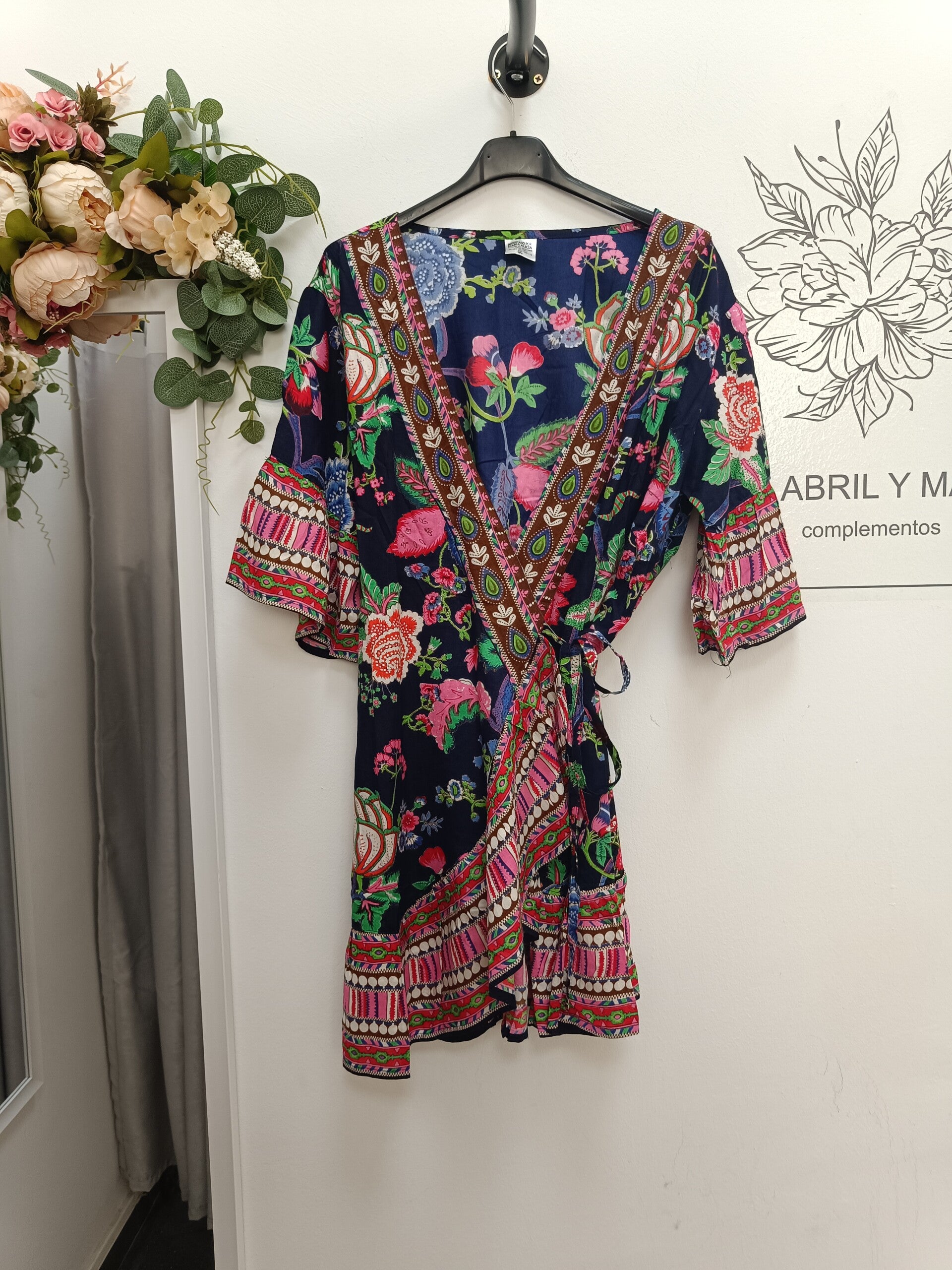 VESTIDO CORTITO CRUZADO CON VOLANTE EN LA PARTE DE ABAJO Y MANGAS.